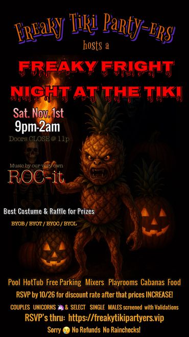 THANK YOU for an amazing and successful 2025!! We hope that everyone enjoys the holidays. Our next Freaky Tiki party will be Super Bowl LX on Sunday, February 8, 2026. Check back for more party details mid-December.